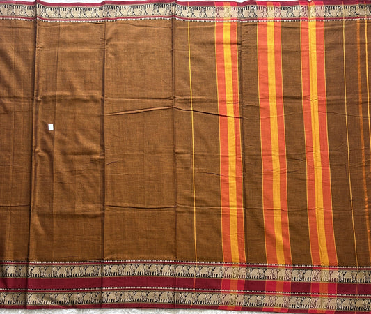 Narayanpet Cotton Saree Sepia Brown Colored Complemented with a Thread Border.