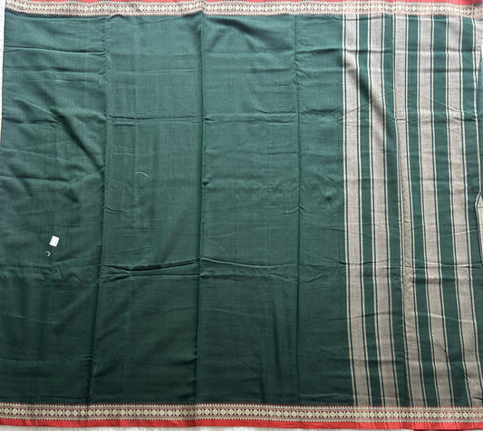 Narayanpet Cotton Saree Forest Green Colored Complemented with a Thread Border.