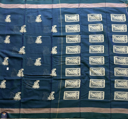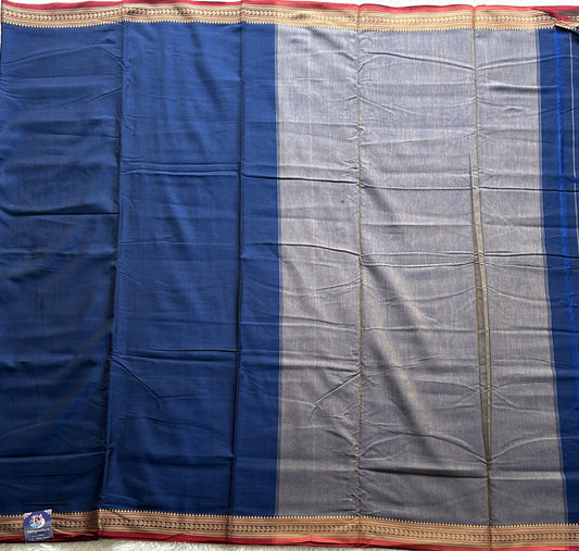 Narayanpet Cotton Saree Prussian Blue Colored Complemented with a Thread Border.