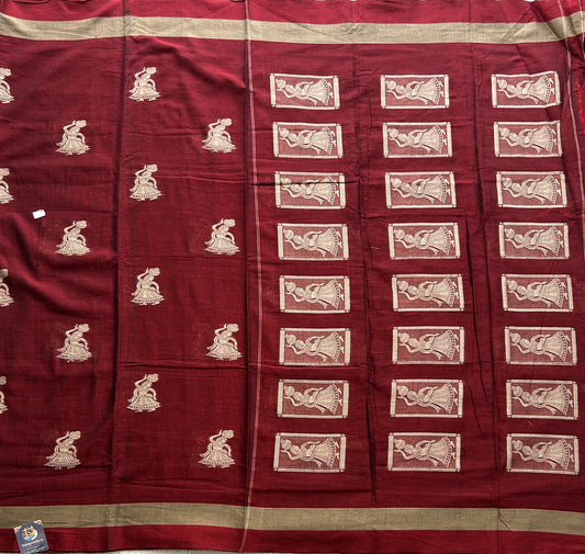 Narayanpet Cotton Saree Dark Maroon Colored Complemented with a Thread Border.