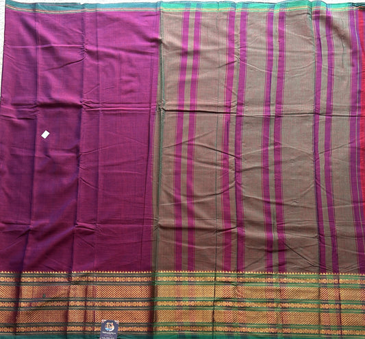 Narayanpet Cotton Saree Dark Lilac Colored Complemented with a Green Thread Border.