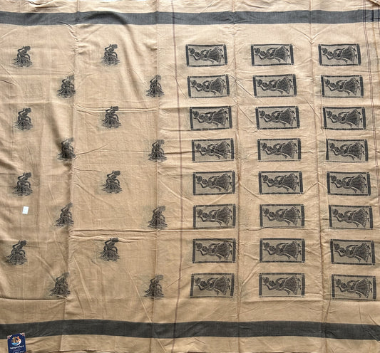 Narayanpet Cotton Saree Light Cream Colored Complemented with a Thread Border.
