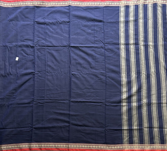 Narayanpet Cotton Saree Indigo Blue Colored Complemented with a Thread Border.