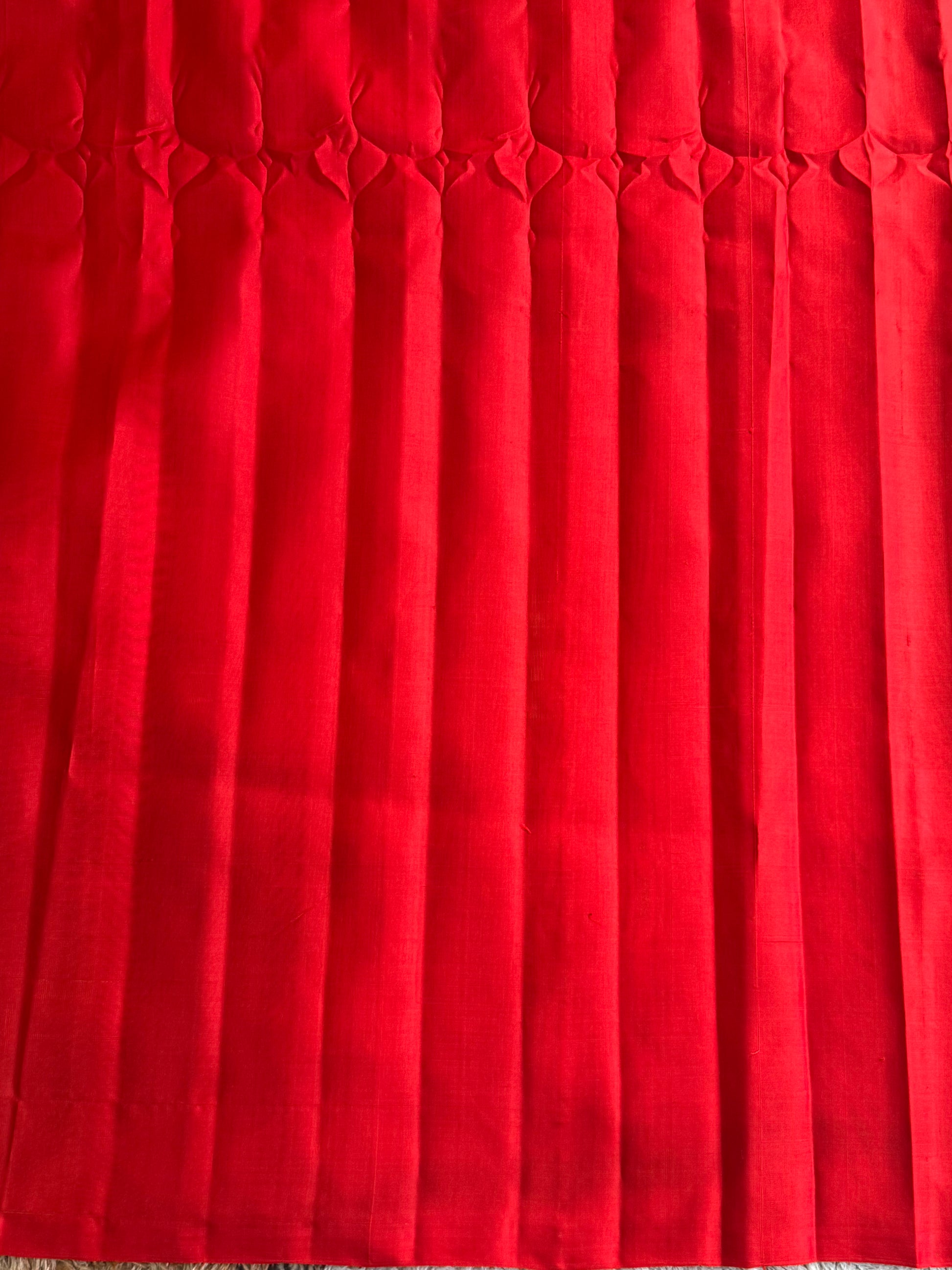- Pallu: Traditional Gadwal pallu with Red Selvedge border