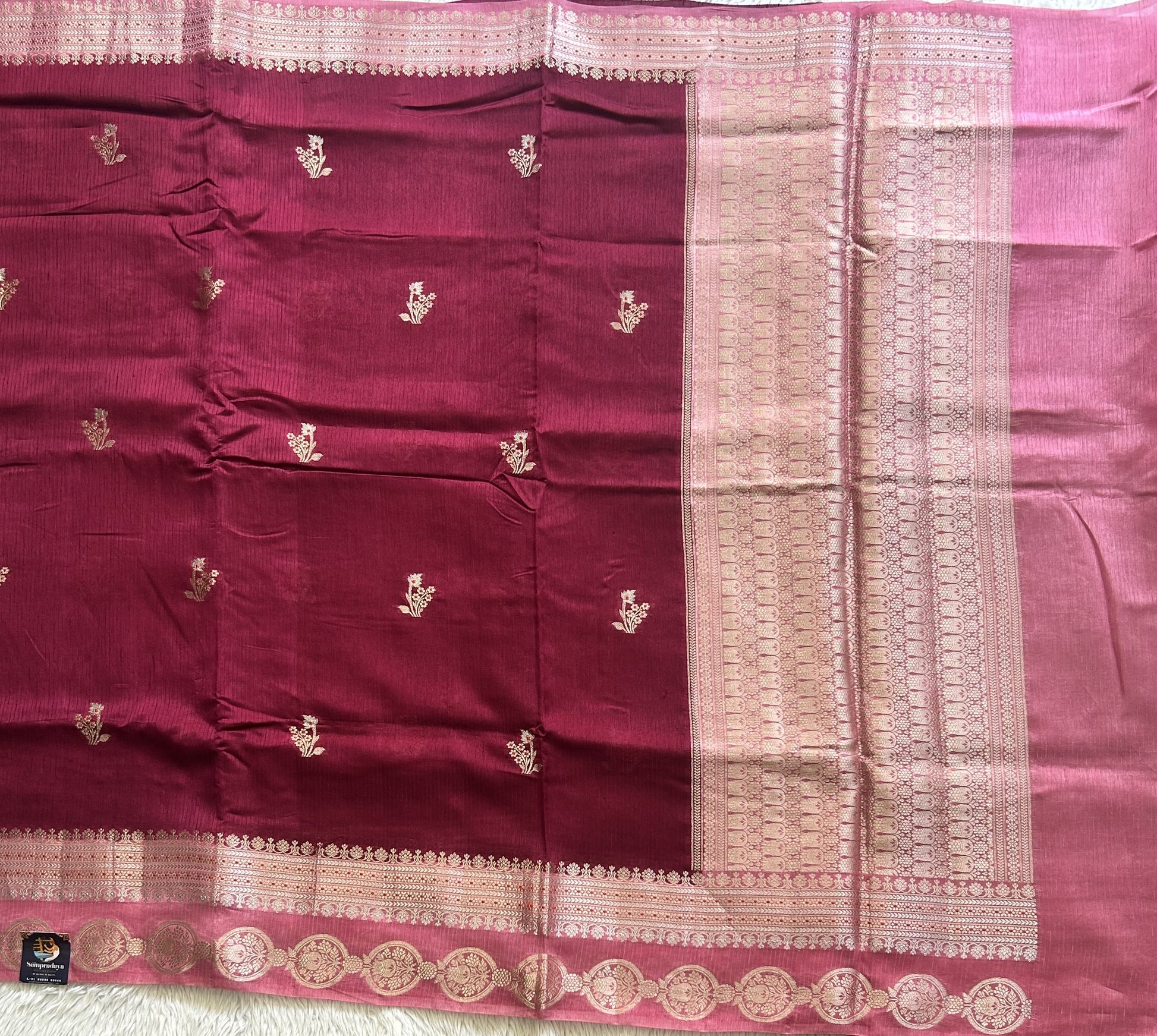 - PALLU: Baby Pink Purple Color Silver Zari Weaving Pallu.