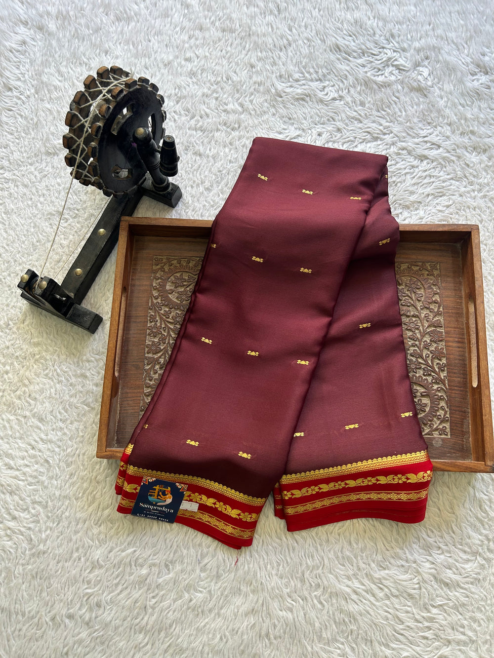 Brown Mysore Crepe Silk Saree with Silver Zari Border | Pure Handloom | Silk Mark Certified