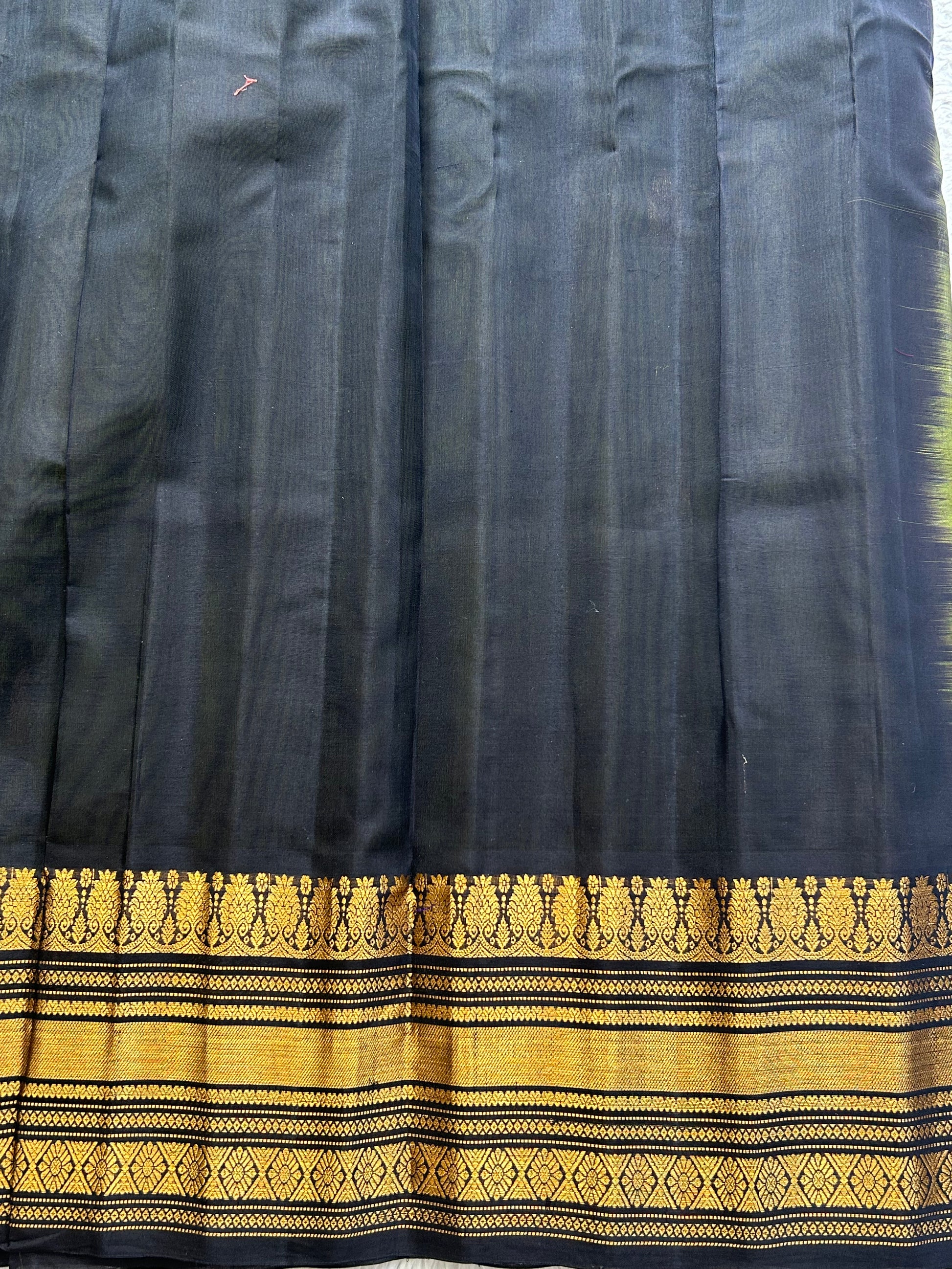 Gadwal Sico Saree Olive Green colored complemented with a Gold Zari Border