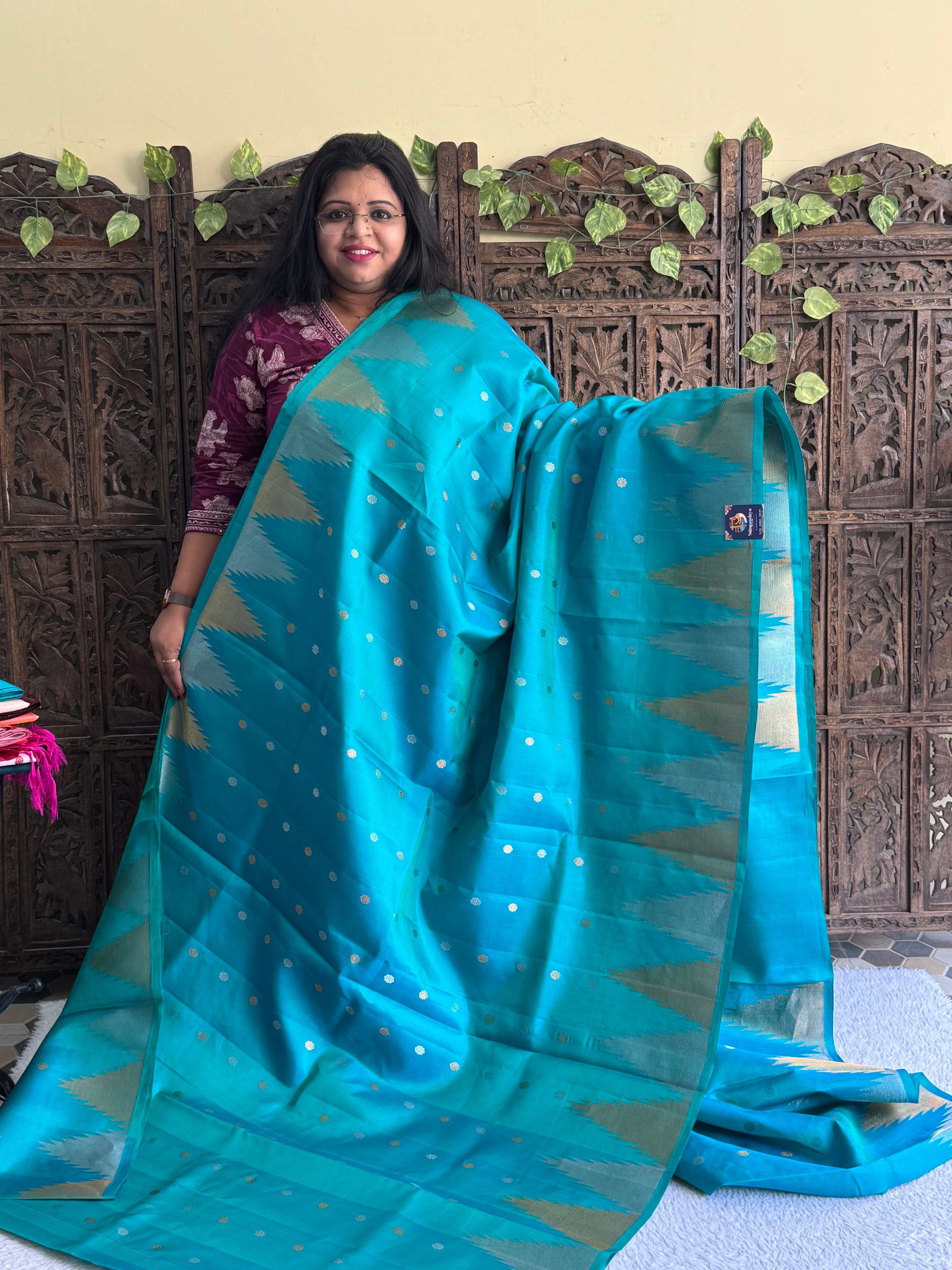 Gadwal Silk Saree Sea Breeze Colored Complemented With Gold And Silver Zari Border