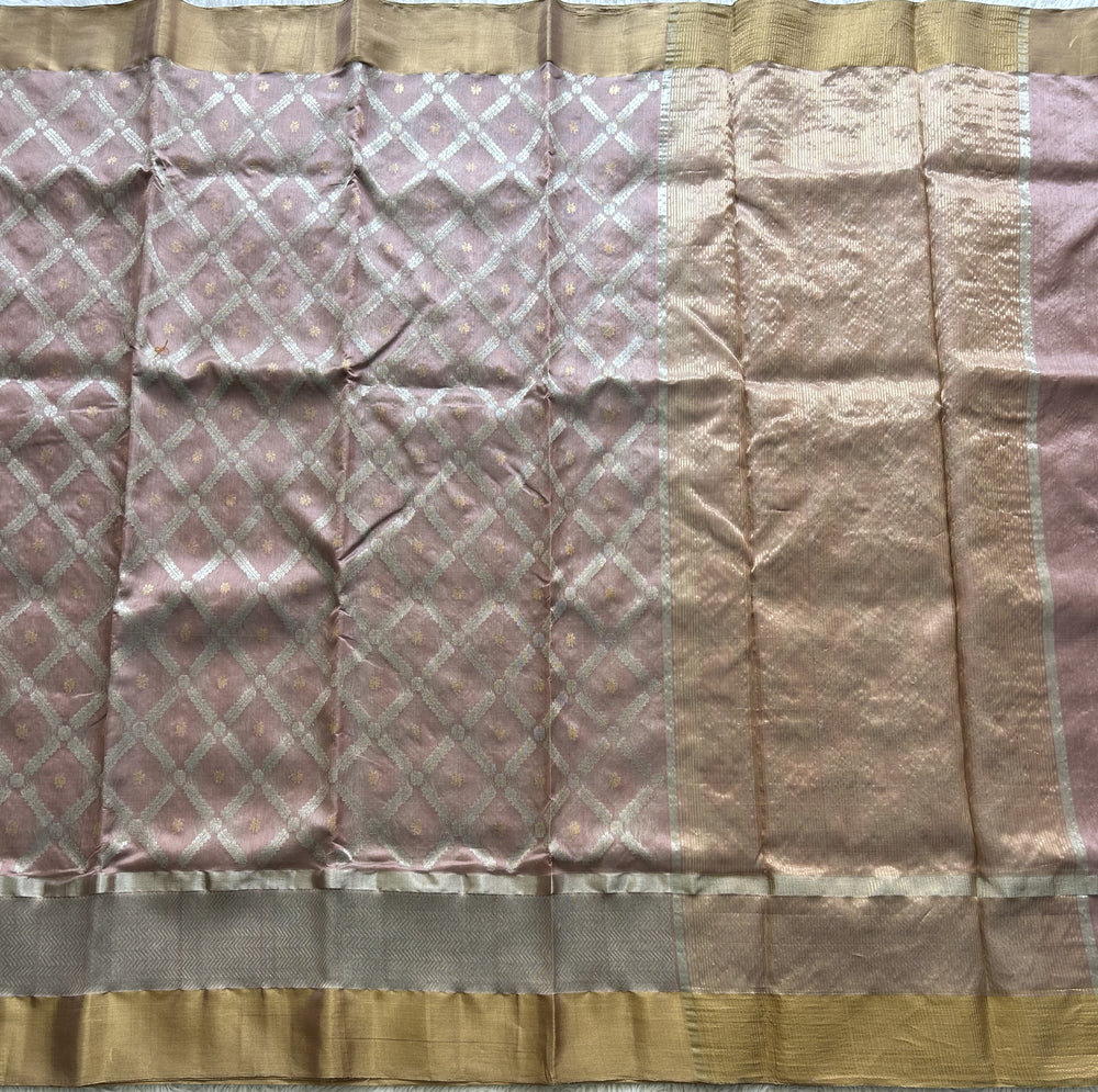 Onion Pink Chanderi Silk Saree With Gold And Silver Zari Border — Pure Handloom | Silk Mark Certified