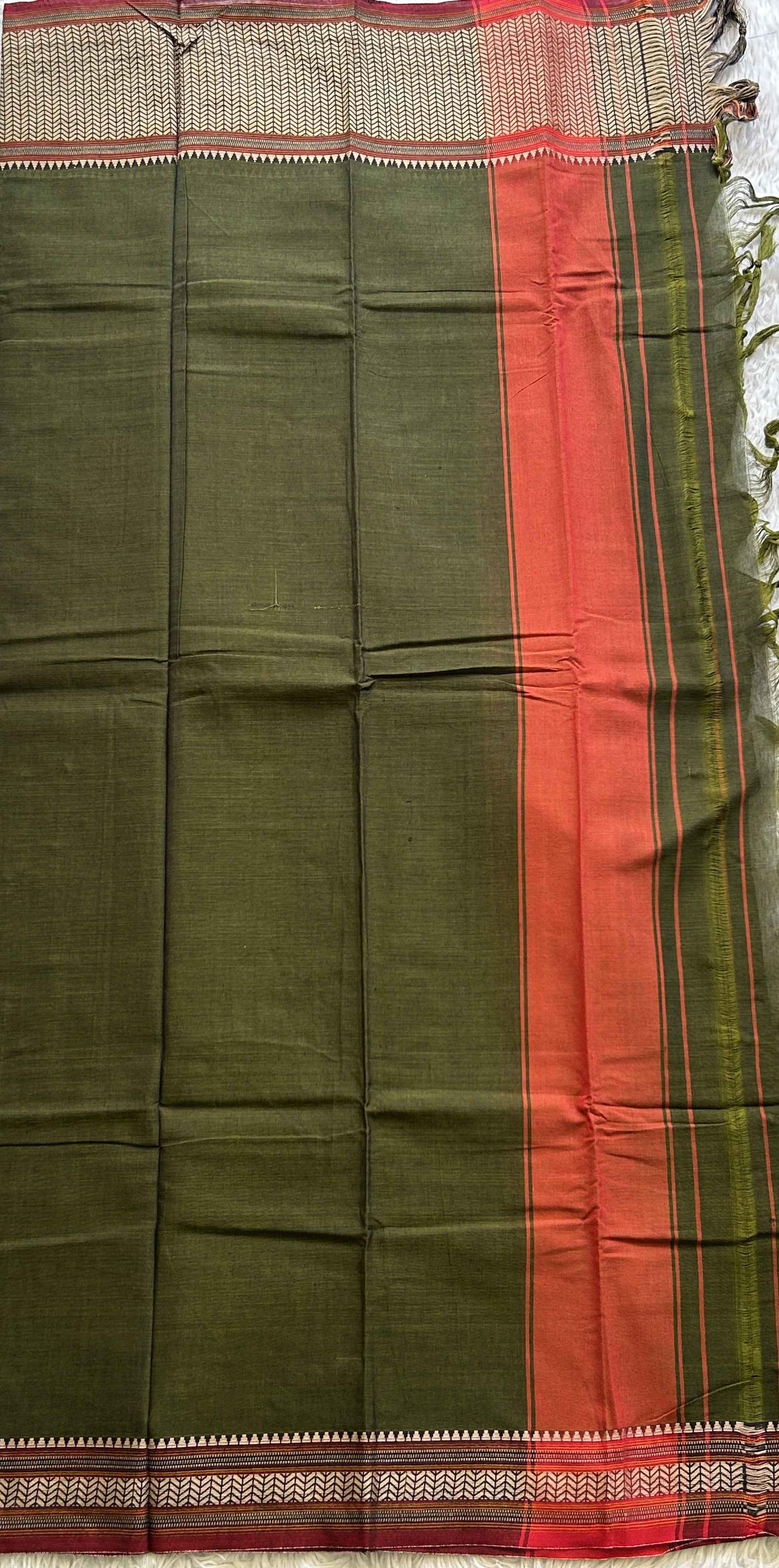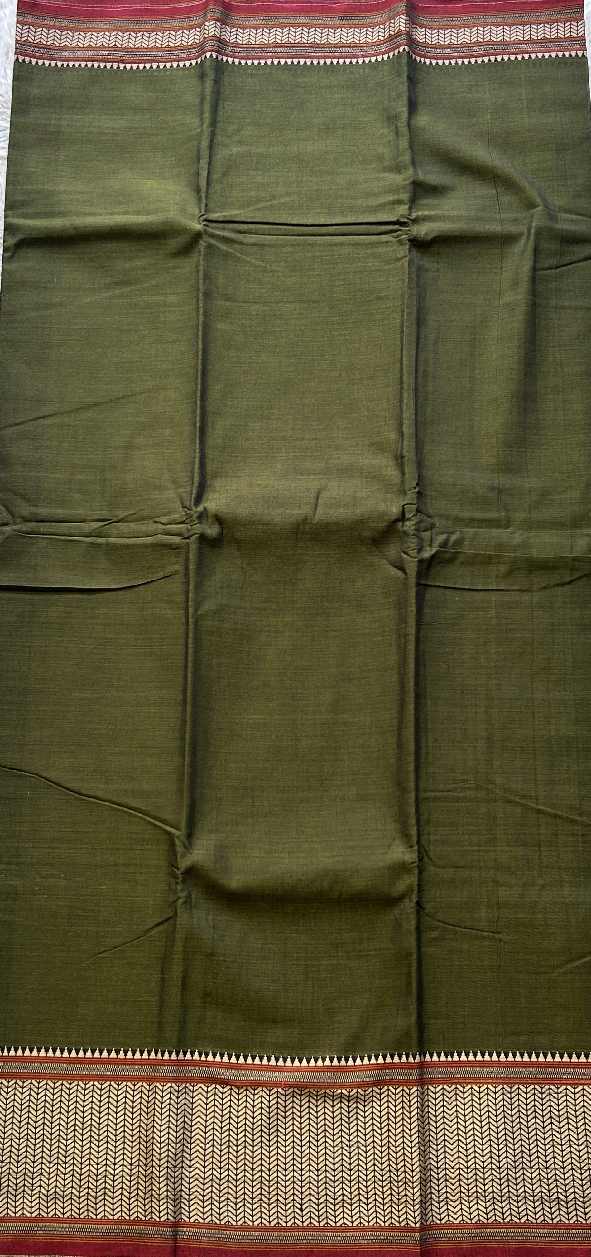 Narayanpet Cotton Dress Material – Dark Army Green Color | Handloom Cotton
