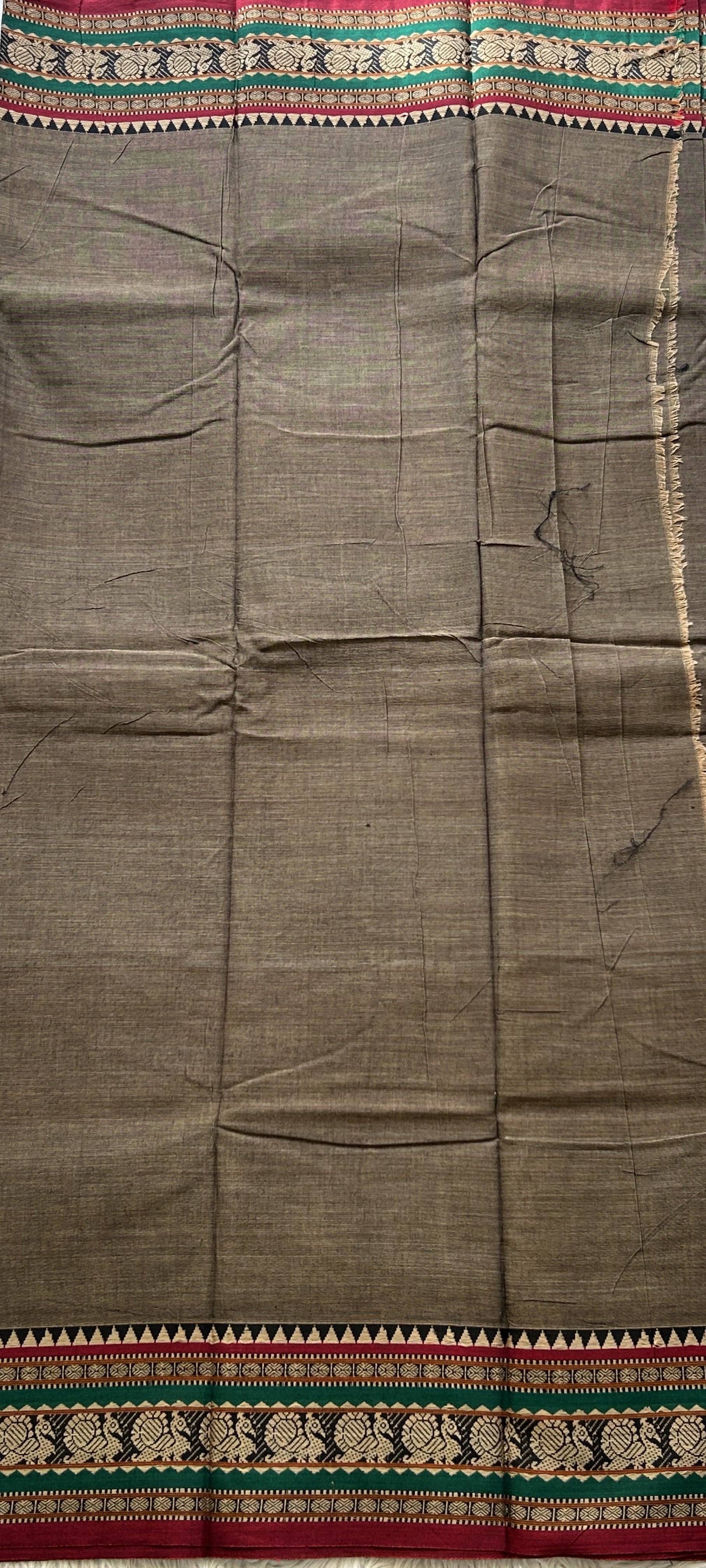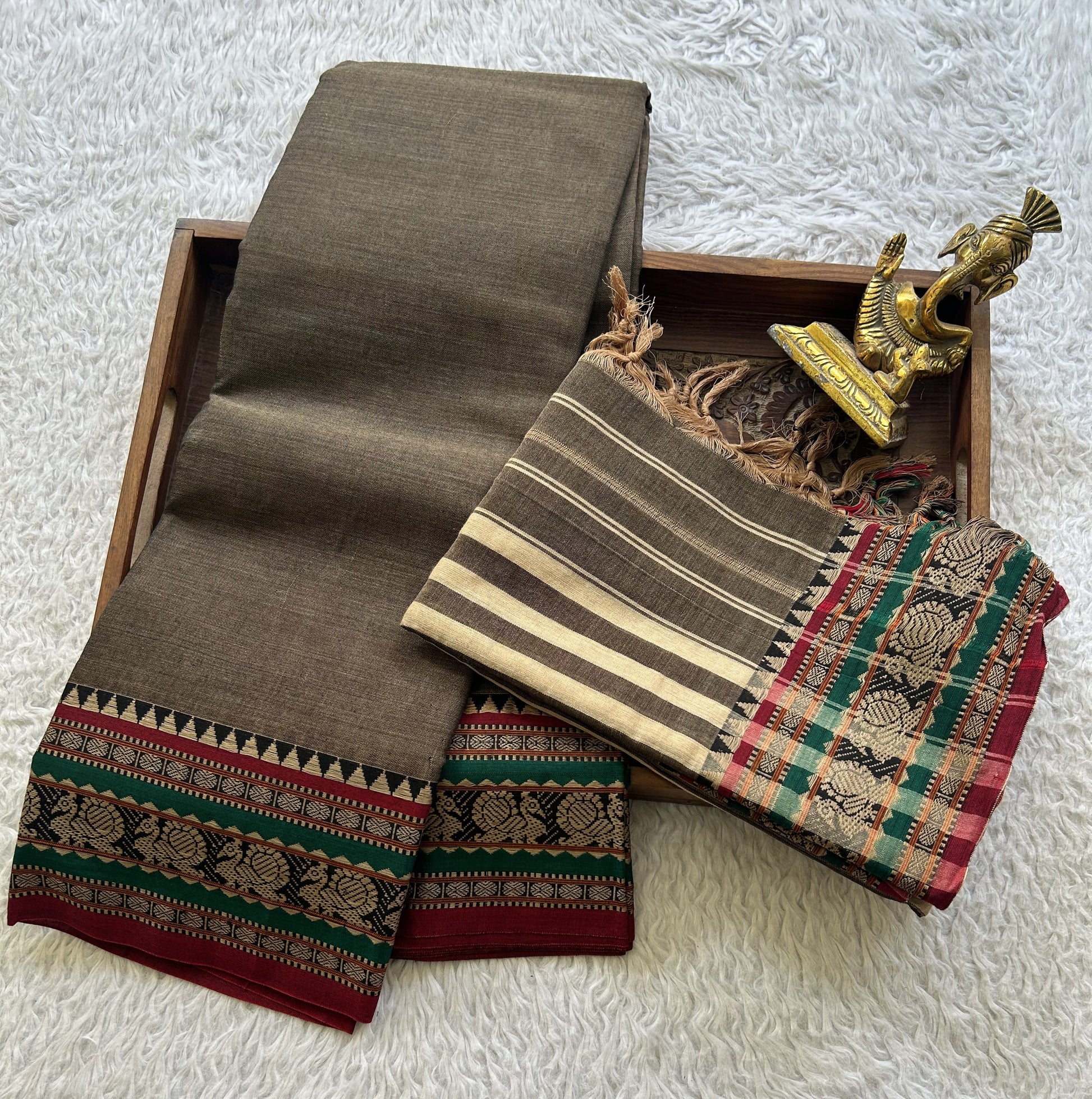 Narayanpet Cotton Dress Material – Dark Taupe Color Thread Border | Handloom Cotton