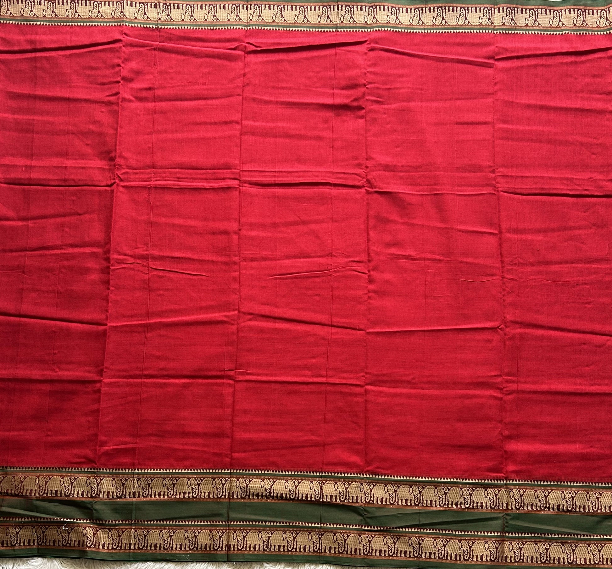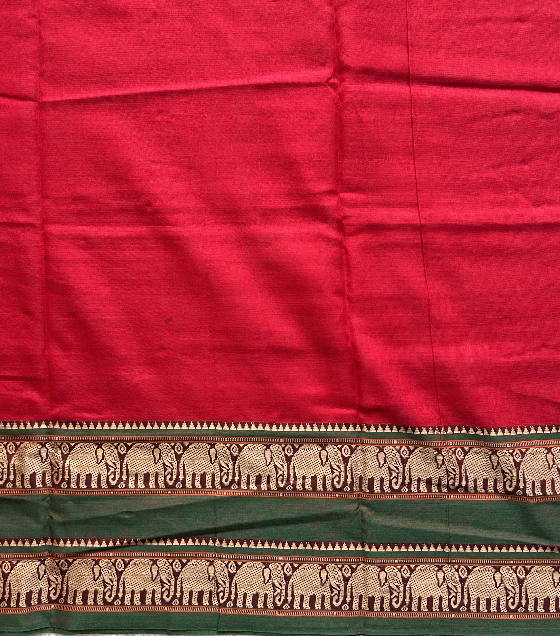 Narayanpet Cotton Saree Carmine Red Colored Complemented with a Thread Border.