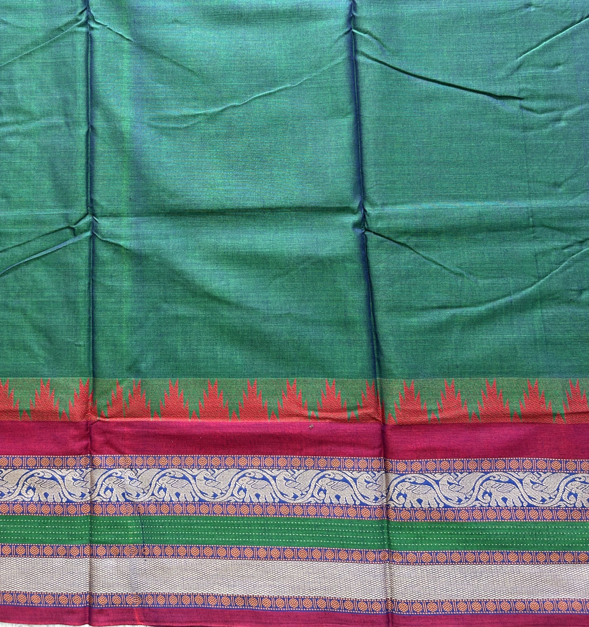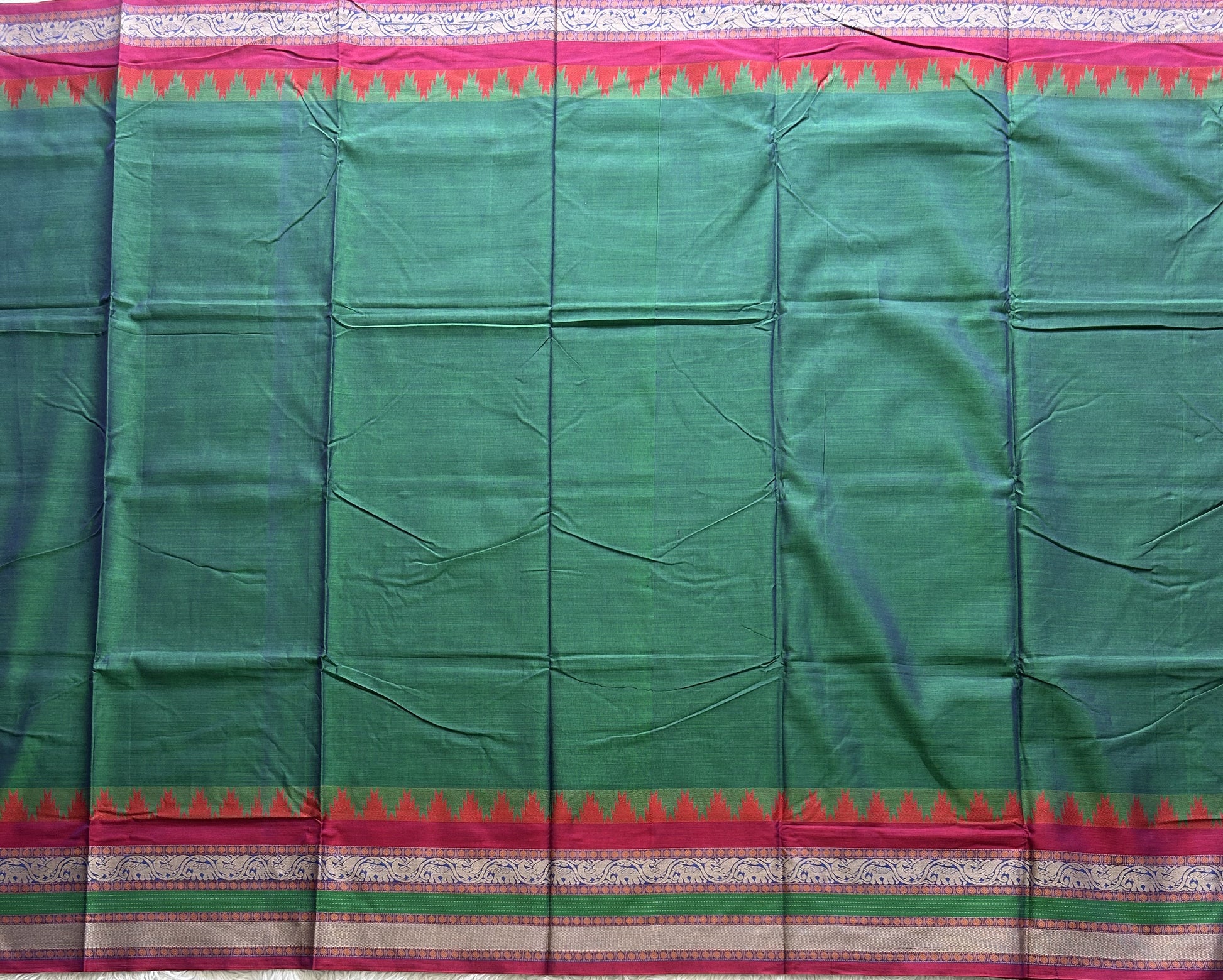 Narayanpet Cotton Saree Light Basil Green Colored Complemented with a Thread Border.