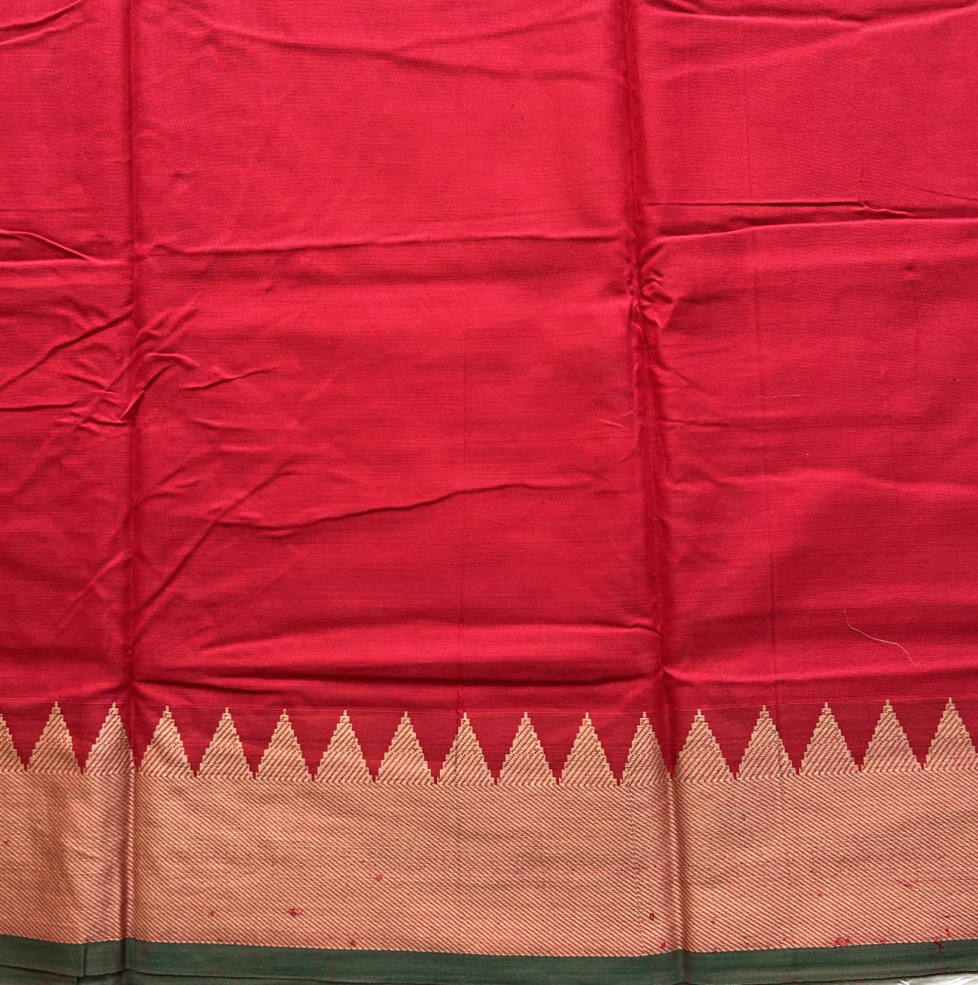 Narayanpet Cotton Saree Light Carmine Red Colored Complemented with a Thread Border.