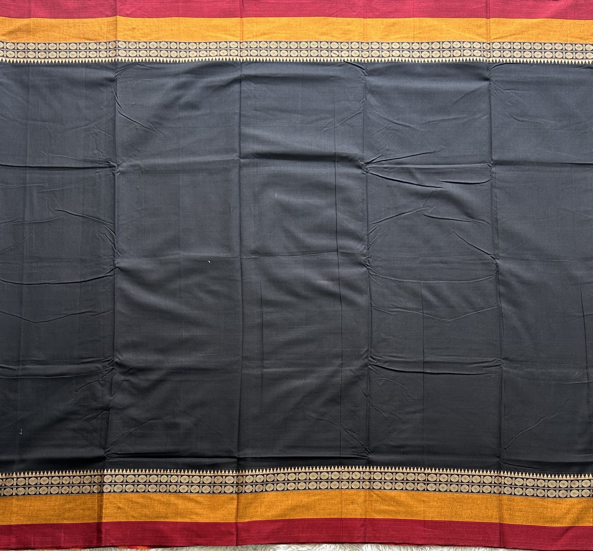 Narayanpet Cotton Saree Midnight Black Colored Complemented with a Thread Border.