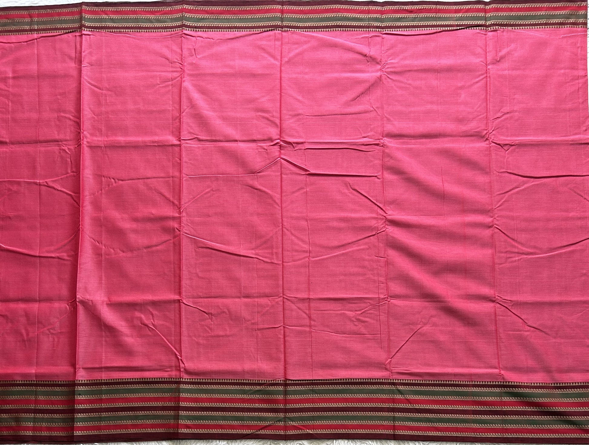 Narayanpet Cotton Saree Punch Pink Colored Complemented with a Thread Border.