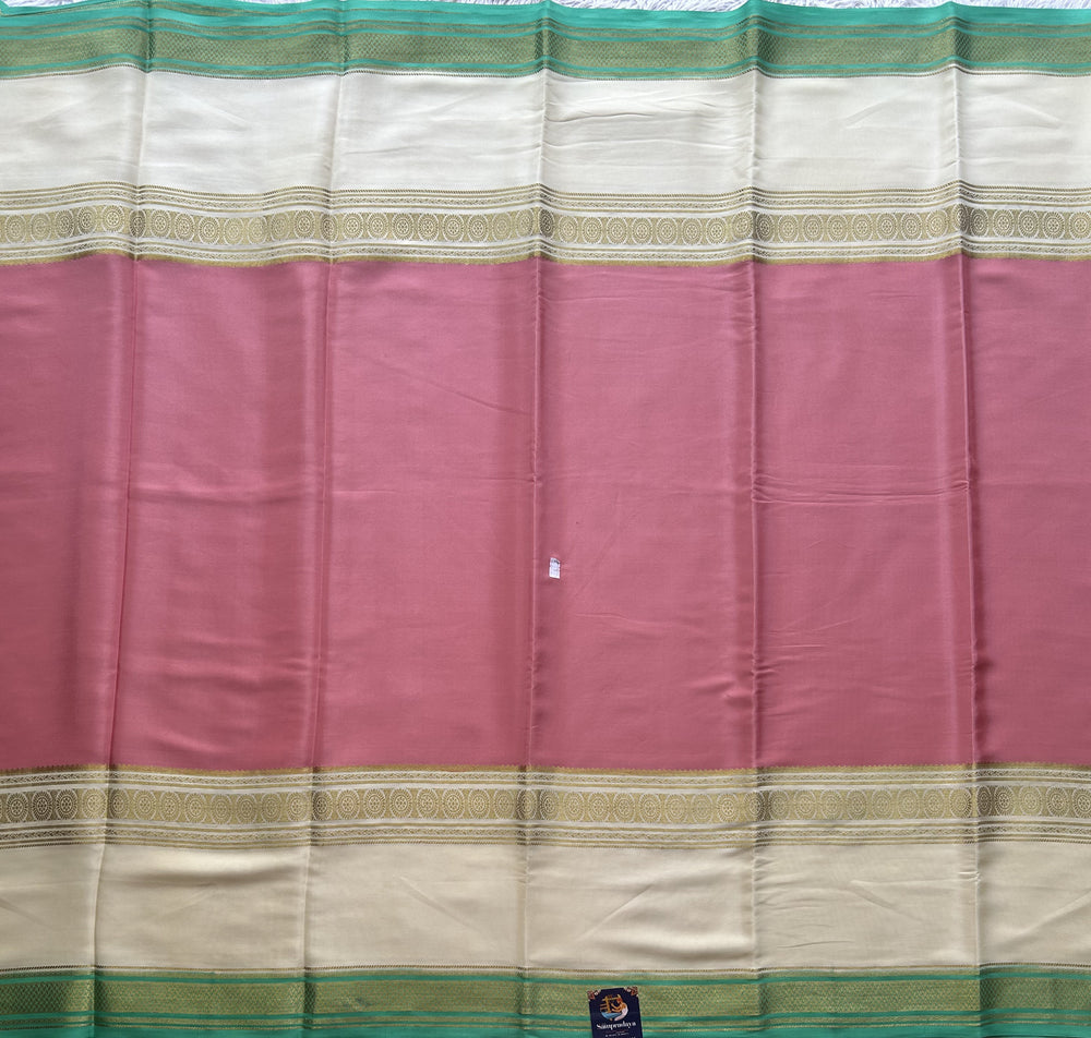 Onion Pink Mysore Crepe Silk Saree with Silver Zari Border | Pure Handloom | Silk Mark Certified