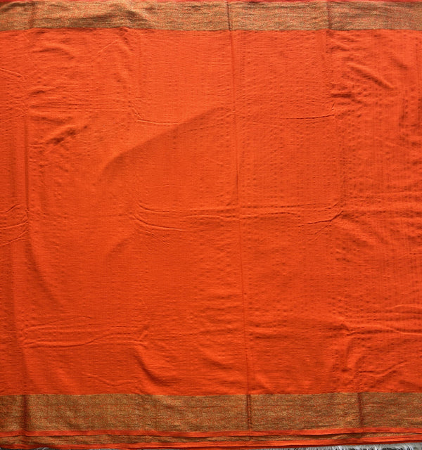 Orange Banarasi Semi Tussar Georgette Saree with Sliver Zari Border — Lightweight Festive Wear