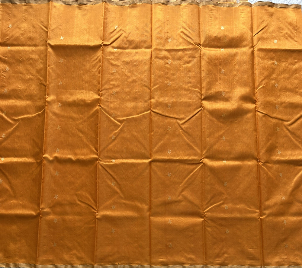 Orange Chanderi Silk Saree With Gold Zari Border — Pure Handloom | Silk Mark Certified