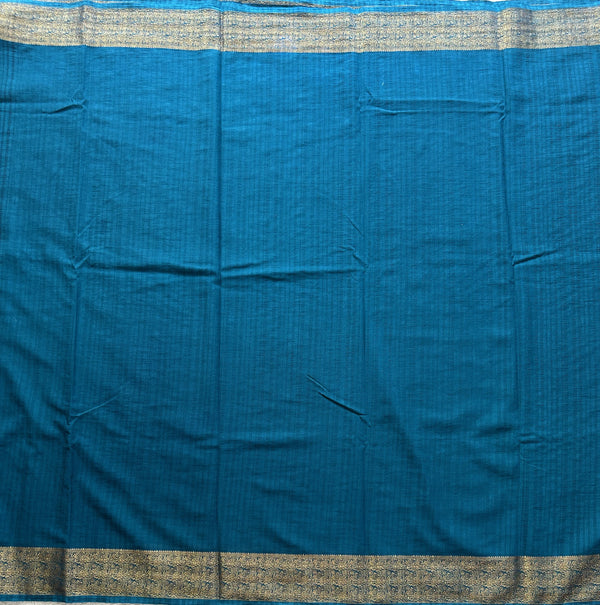Peacock Blue Banarasi Semi Tussar Georgette Saree with Sliver Zari Border — Lightweight Festive Wear