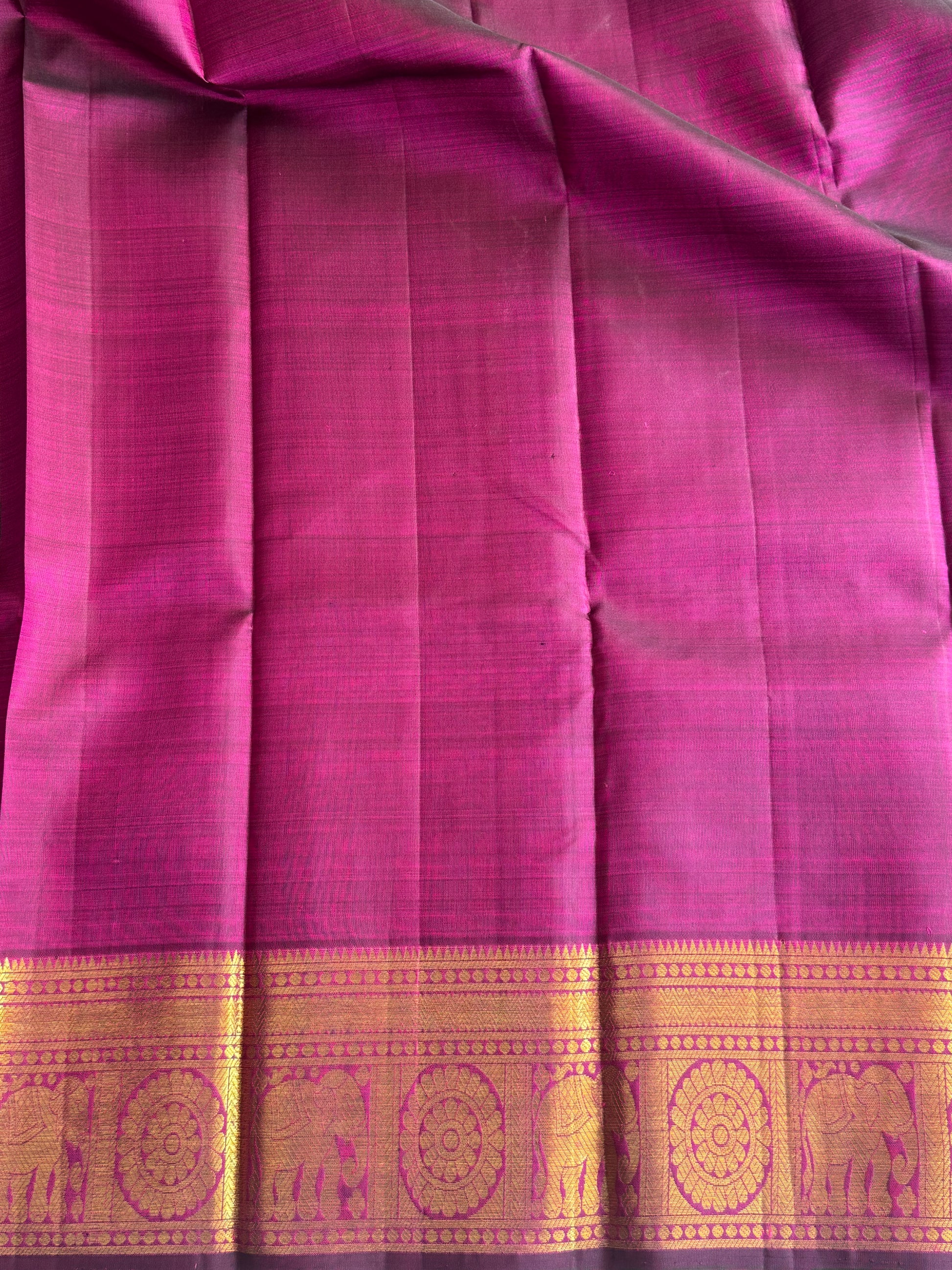 Pure Kanjivaram Silk Saree Barbie Pink Colored Elegantly Paid with a Gold Zari Border