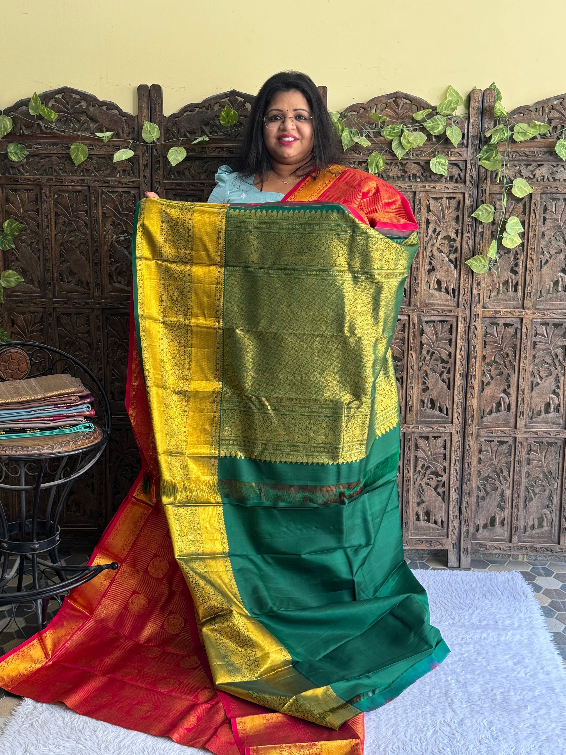Kanjivaram festive silk sarees epitomize timeless elegance with luxurious silk, intricate zari work, and vibrant hues. Handcrafted in Kanchipuram, India, they boast rich motifs inspired by nature and mythology. Adored for their regal allure, these sarees are perfect for weddings and celebrations, embodying the grandeur of Indian tradition.