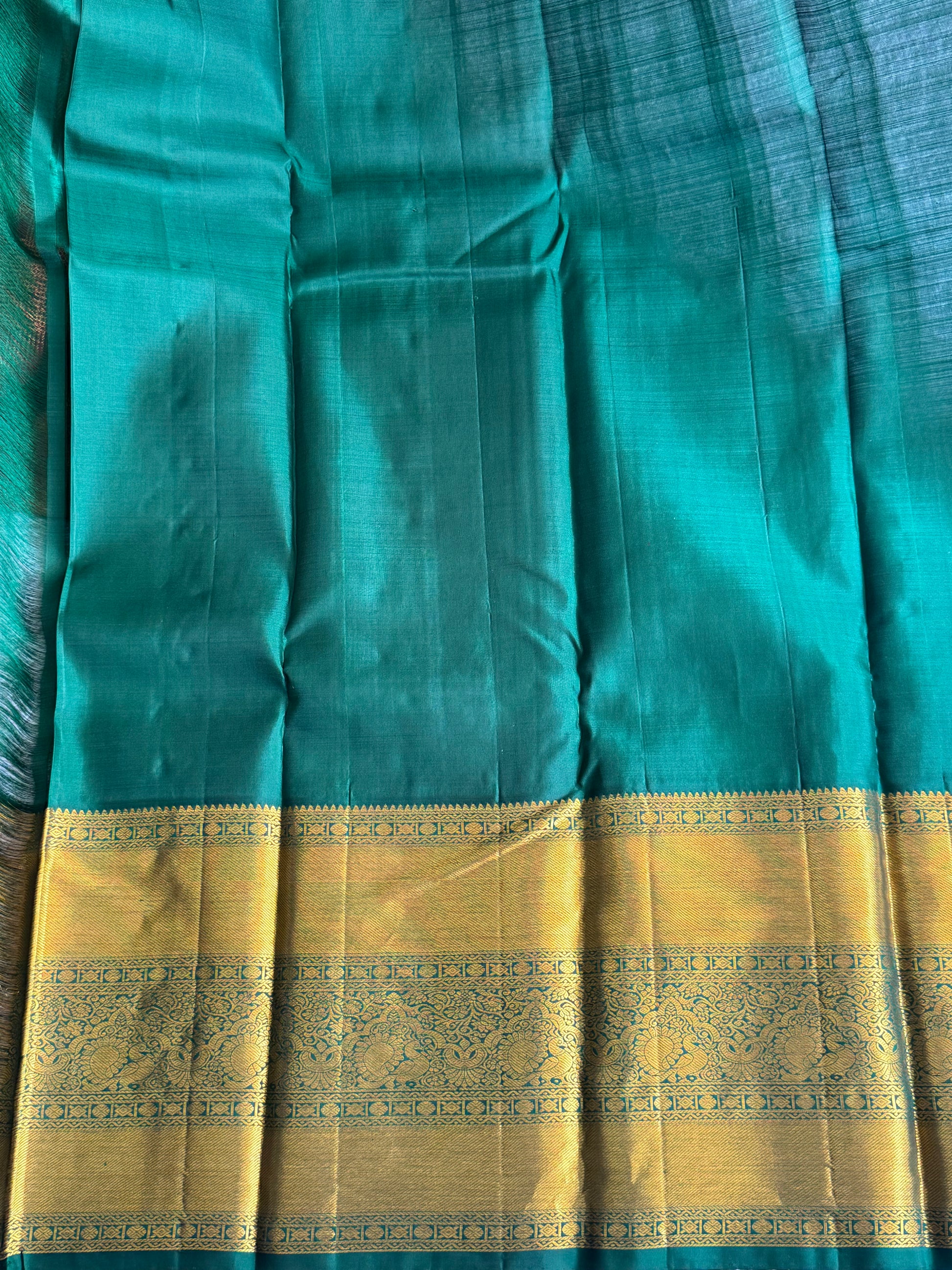 - PALLU: Green Color Gold Zari Weaving Pallu.