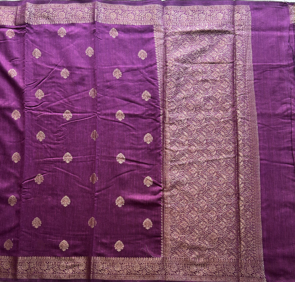Purple Banarasi Raw Silk Saree with Gold Zari Border — Pure Handloom | Silk Mark Certified