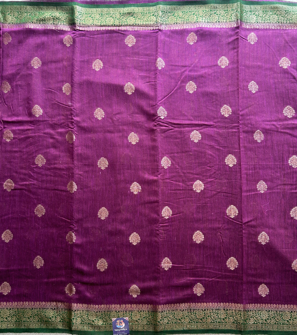 Purple Banarasi Raw Silk Saree with Gold Zari Border — Pure Handloom | Silk Mark Certified