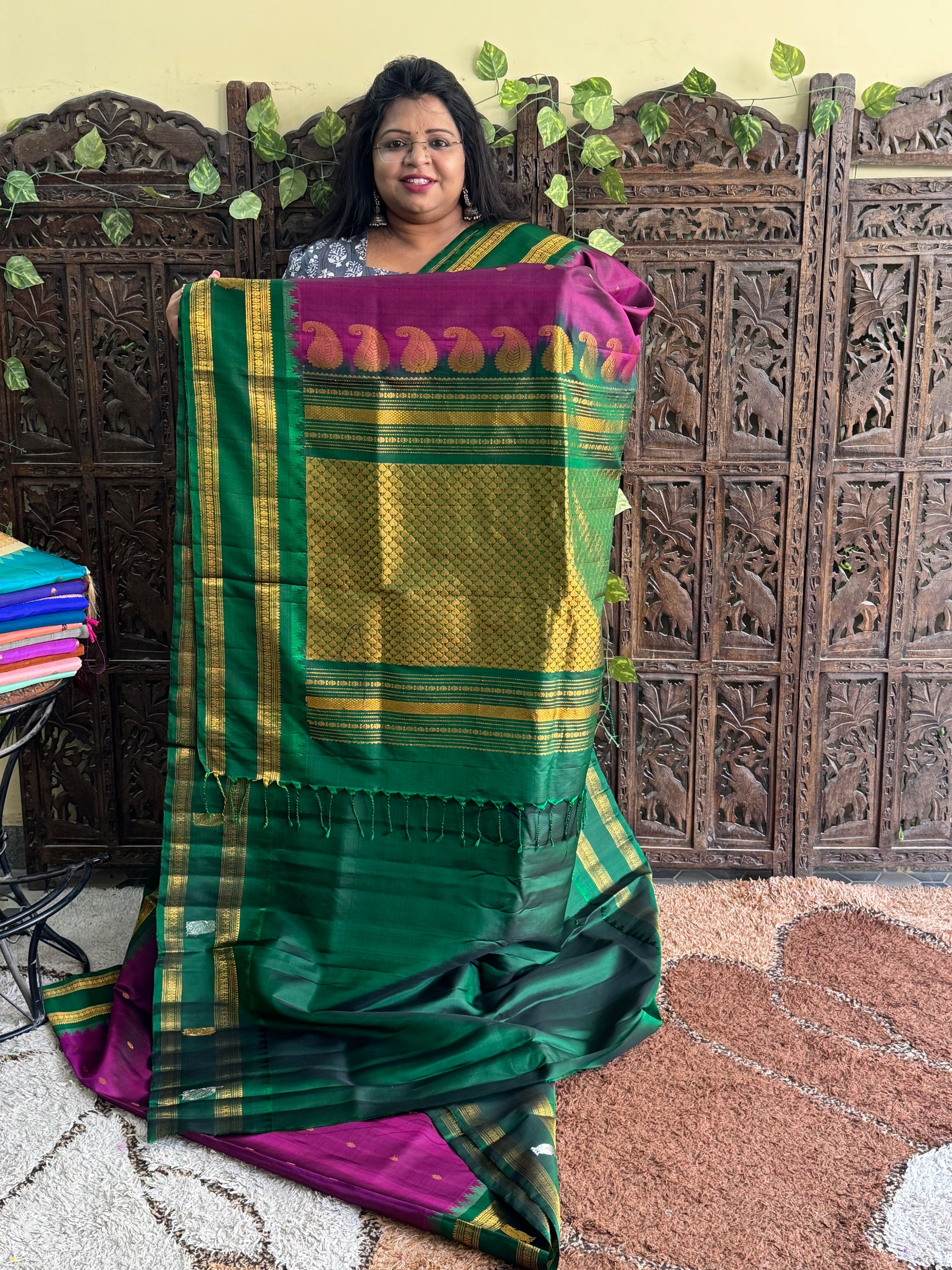 Purple Gadwal Silk Saree with Gold Zari Border — Pure Handloom | Silk Mark Certified