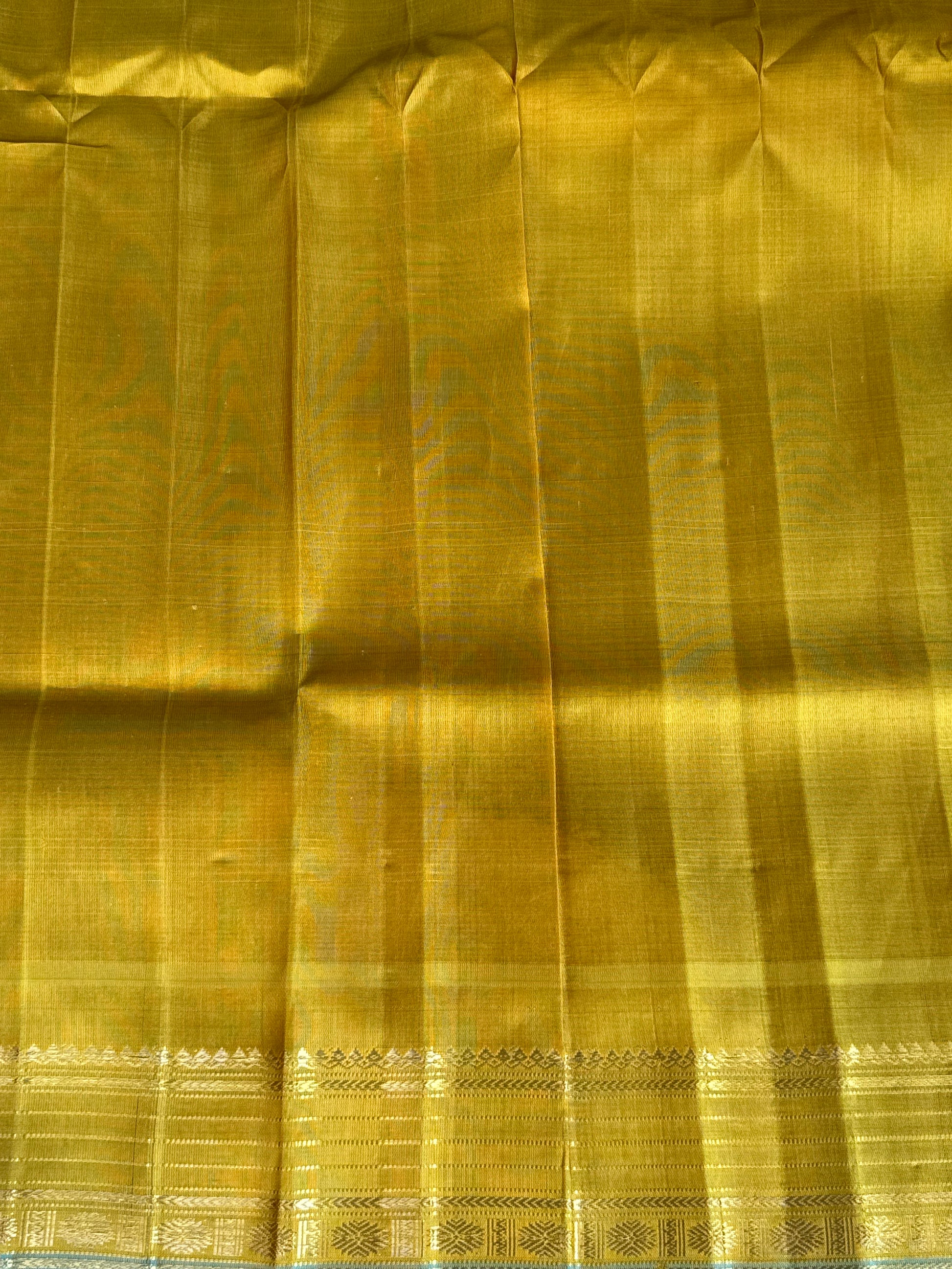 - Pallu: Traditional Gadwal pallu with gold zari border