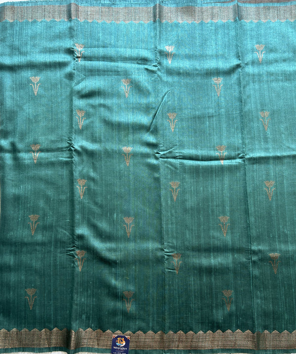 Sea Blue Banarasi Raw Silk Saree with Gold Zari Border — Pure Handloom | Silk Mark Certified