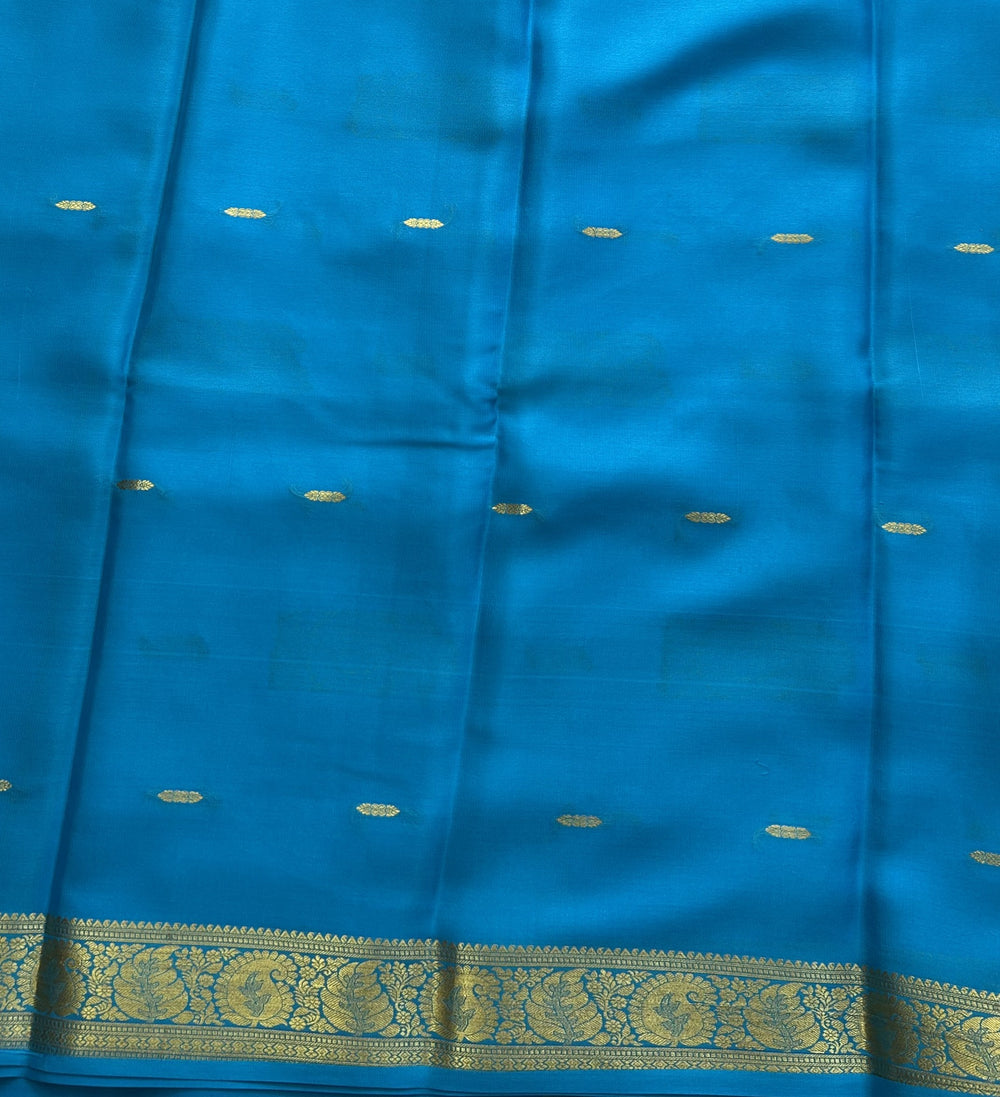 - Border: Gold Zari Blue Border
