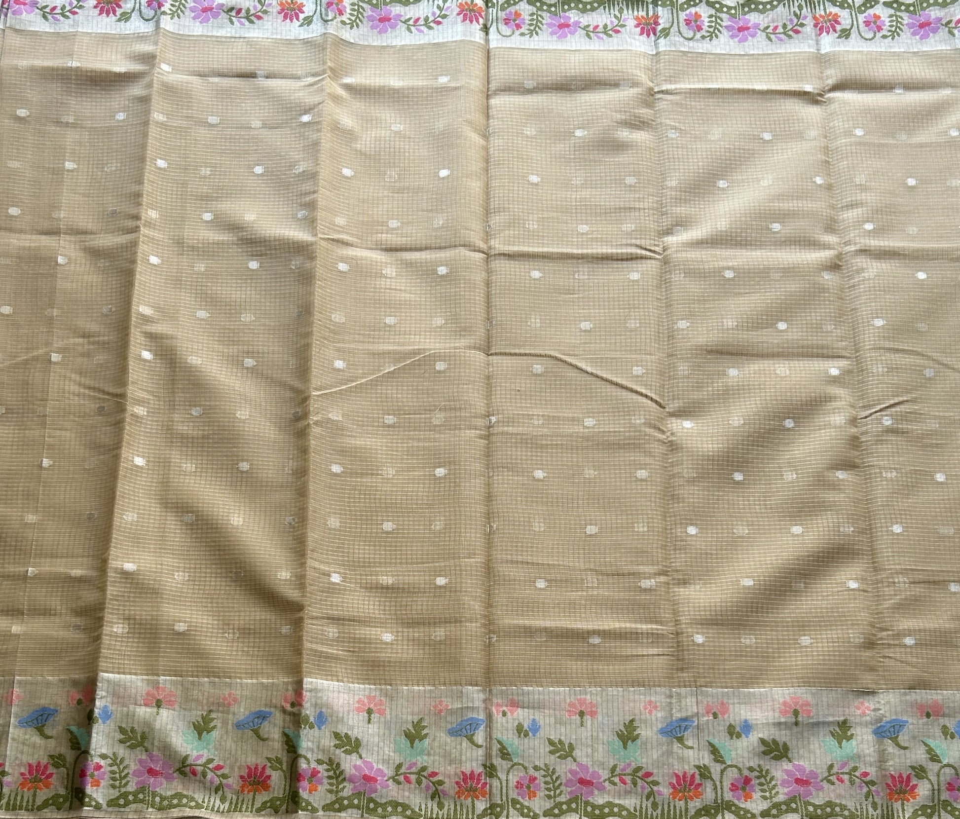 Silk Kota Saree Flax Cream Colored Elegantly Paired with a Tissue Border
