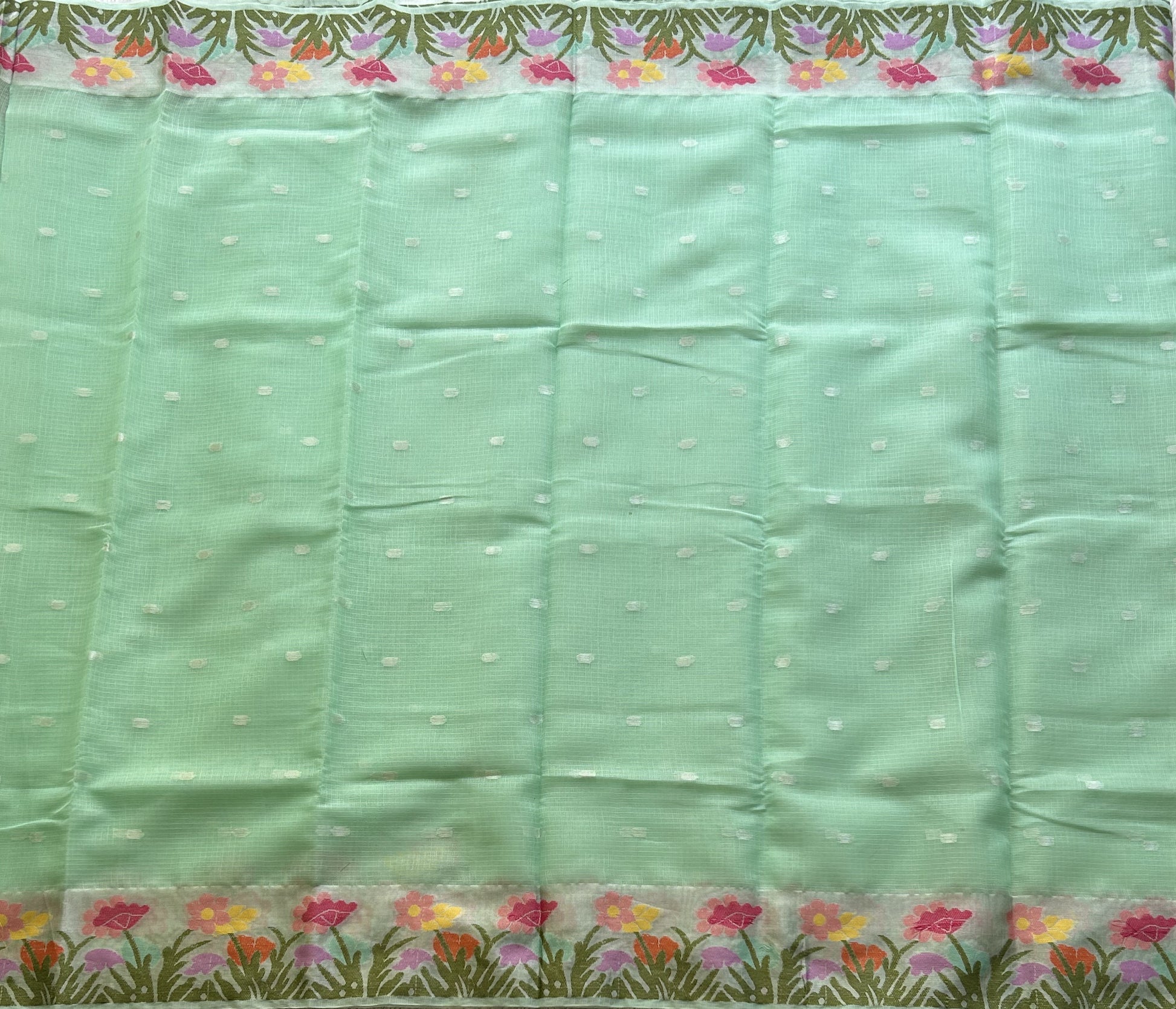 Silk Kota Saree Light Lagoon Colored Elegantly Paired with a Tissue Border