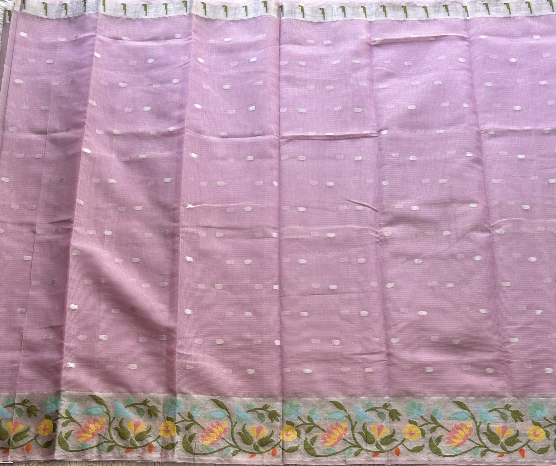 Silk Kota Saree Light Lavender Colored Elegantly Paired with a Tissue Border