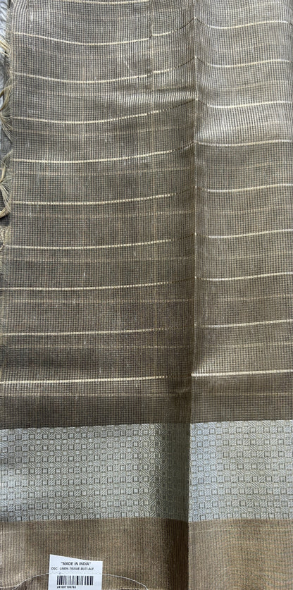 - SAREE: Explore the charm of Tissue Saree Brown colored complemented with a Buti Border.