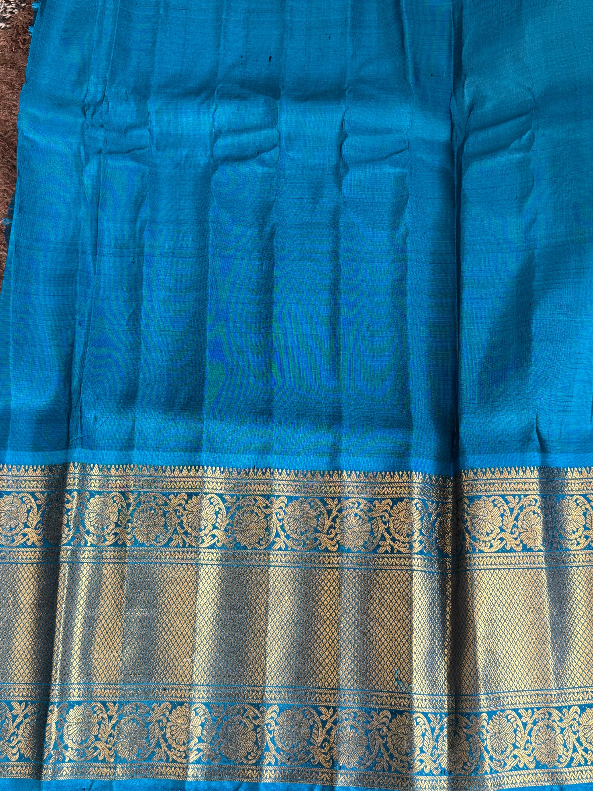 - Pallu: Traditional Gadwal pallu with gold zari border