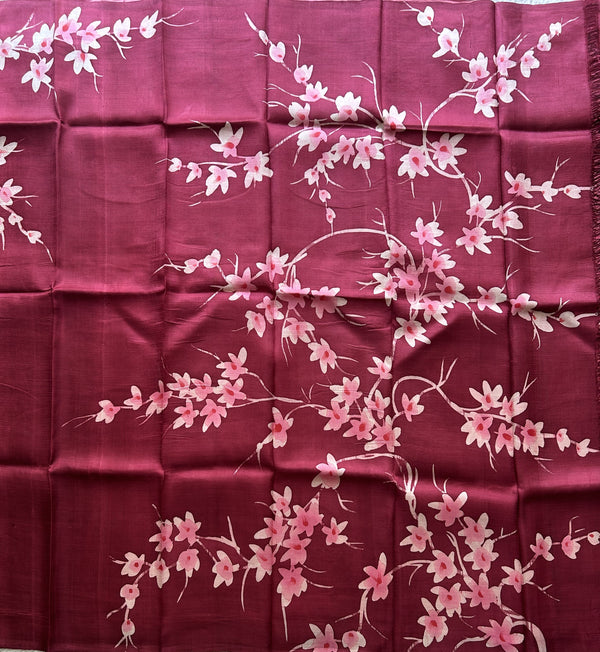 Wine Tussar Silk Saree featuring Hand-Painted Artisan Work | Pure Handloom | Silk Mark Certified