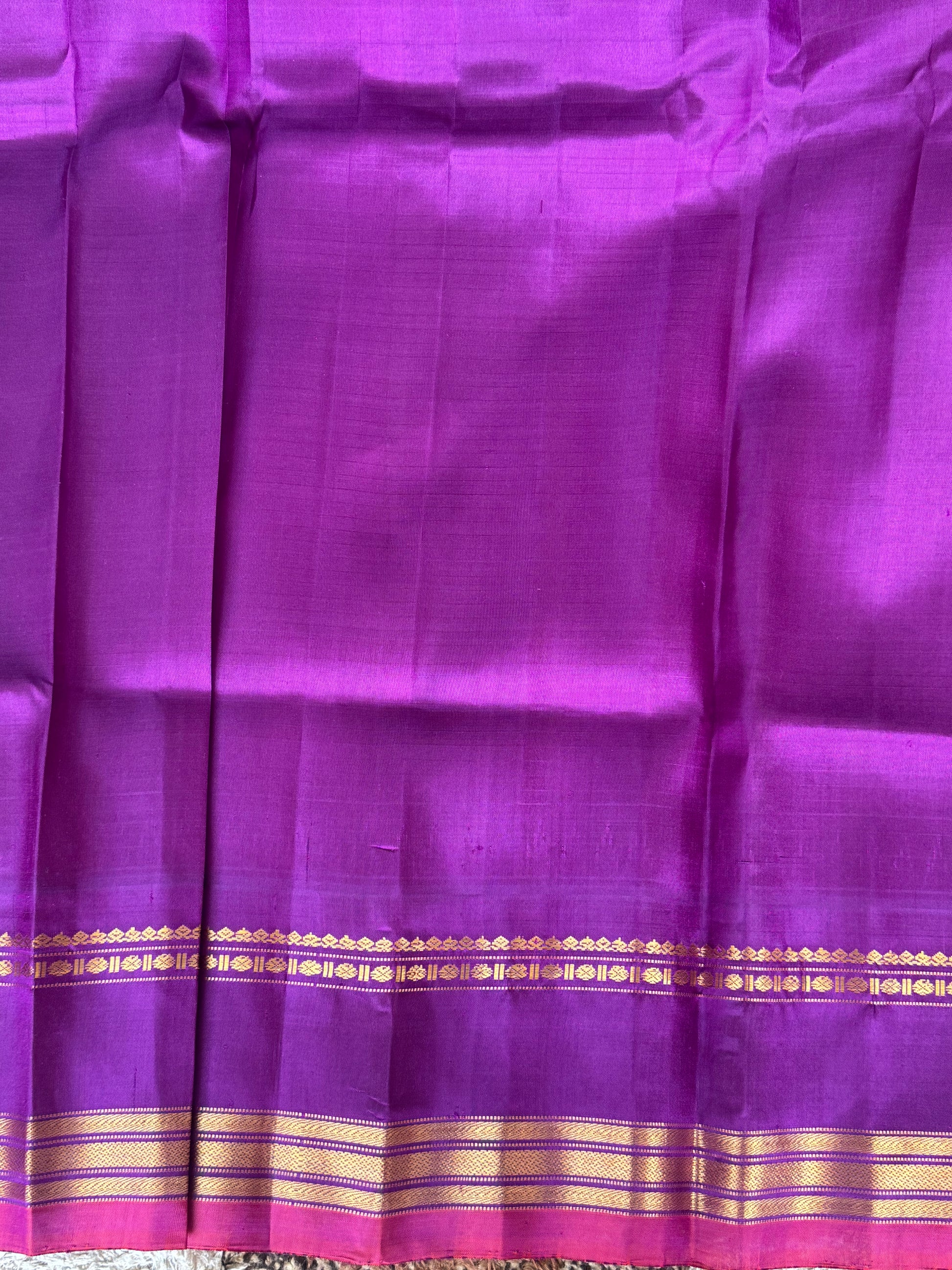 - Pallu: Traditional Gadwal pallu with gold zari border